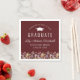 Une belle bordure florale d'aquarelle de fleurs sauvages décore le bord inférieur de ces serviettes branchées de fête de graduation de boho. Les mots "félicitations à notre diplômé" entourent la silhouette d'un casquette traditionnel en mortier. Customisez le texte blanc sur un arrière - plan rouge bordeaux, avec le nom du diplômé en écriture manuscrite et l'année scolaire et scolaire en sans serif font.