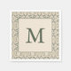 A charming holiday napkin featuring a vintage-inspired folk floral border in soft sage, blush, and cream tones with a bold monogram centered on a neutral background. Perfect for Christmas parties, winter weddings, or festive holiday gatherings.