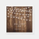 Rustic Wood Fairy Light Family Holiday Party Paper Napkin est la touche parfaite pour votre fête de vacances rustique. Avec du bois de grange et de petites lumières de fée, ces serviettes de cocktail monogrammées sont incontournables. Personnalisez avec les noms et la date en cliquant sur "Customiser"!