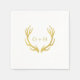 Élégante serviette en papier mariage blanc classique avec des bois en faux feuille or. Ajoutez facilement vos initiales de monogramme.