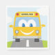Un bus scolaire joyeux avec un visage souriant. Ce design semble vraiment efficace sur ces serviettes en papier