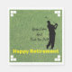 Un design amusant pour votre golfeur préféré. L'arrière - plan a l'air d'un parcours de golf, avec une silhouette d'un golfeur. Le texte du script disait : "Conserver le calme et enfoncer le cul". En bas, le texte dit "Bonne retraite". Tout le texte peut être customisé.