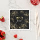 Cette serviette en noir et or de Joyeux Nouvel An présente une illustration moderne, élégante et classe, avec des feux d'artifice importants.