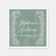Un joli design de bordure fleur sauvage & oiseau encadre les noms de la mariée et du marié dans un dessin artistique blanc. La date du mariage est également en blanc. L'arrière - plan ressemble à du papier vert sauge texturé. OEuvre d'art et de design fantastique et unique de Tuzi Williams.