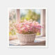 Bouquet rose de dentelle de la reine Anne dans un panier en osier blanc près d'une fenêtre ensoleillée.