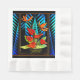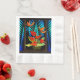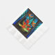 Cette serviette avec l'artiste, Leslie Sigal Javorek, audacieuse, peinture numérique Art déco originale d'une sculpture en bois sculpté d'Anthuriums en pots et d'Oiseaux de Paris assis devant une brillante vitrail bleu et noir fait un beau cadeau pour Noël ou n'importe quand d'autre !