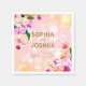 Beau design élégant de serviette en papier pour mariage floral avec bouquet d'orchidées sur fond rose pêche. Le texte est entièrement personnalisable.