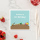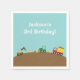 Choisissez cette serviette en papier coloré pour compléter votre fête d'anniversaire de thème de construction! Il a un camion à benne rouge et jaune mignon transportant les débris, une pelle orange, un chargeur avant vert poussant la saleté, les cônes orange et blanc. Personnalisez avec un message de fête !