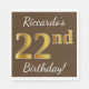 Serviette En Papier Brown, Faux Gold 22e anniversaire + Nom personnali