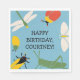 Ajoutez votre propre message pour créer des serviettes personnalisées pour votre soirée à thème insecte ou insecte. Ces serviettes en papier présentent des illustrations de coléoptères, d'une libellule, d'une sauterelle, d'un papillon de nuit et d'une cigale au style rétro en jaune, rouge, noir, blanc et vert dressé contre un arrière - plan bleu clair. Votre message personnalisé apparaît dans le centre.