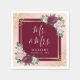Élégantes serviettes en papier mariage bordeaux et floral. Éléments correspondants disponibles.