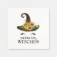 Les serviettes idéales pour votre soirée Halloween ou enterrement de vie de jeune fille sur le thème d'Halloween. Il présente un visage de sorcière mignon (un chapeau de sorcière rustique orné d'un bouquet de tournesols sur des cils noirs). Ci-dessous, le texte noir indique "Buvez, sorcières !" dans une police appropriée et effrayante.