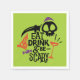 Mangez, buvez et soyez effrayant est imprimé sur ces serviettes en papier - disponibles en 2 tailles - en typographie amusante avec un verre de vin, crâne, couteau effrayant, pizza et bonbons. Super plaisir pour votre fête ou donner comme cadeau d'hôtesse. MODIFIEZ la couleur arrière - plan vert citron pour l'adapter à votre thème de décoration Halloween.