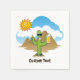 Dessin de cactus souriants avec lunettes de soleil dans un paysage désertique tenant une tasse de bière et donnant des pouces. Texte personnalisé.