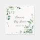 Ces serviettes de baby shower de feuillage vert script de calligraphie sont parfaites pour un baby shower simple. Le design se compose d'aquarelle dessinée à la main d'élégantes branches d'eucalyptus botaniques et de feuilles, disposés en de beaux bouquets et motifs géométriques.