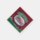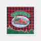 Ces serviettes de fête de vacances présentent une scène hivernale d'un camionnette rouge classique conduisant à travers la neige, un arbre de Noël frais dans le dos. Une bannière verte ci-dessus indique "Joyeux Noël" dans la typographie moderne. L'arrière - plan est un motif en plaid de buffle rouge et noir avec une bordure de pins verts et un arrosage de neige.
