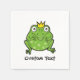 Caricature de grenouille verte à couronne dorée. Prince grenouille. Couleur arrière - plan personnalisée. Texte personnalisé.
