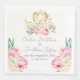 Cette serviette de mariage personnalisée a un thème de conte de fées avec des fleurs roses et blanches. Aquarelle roses blanches et pivoines roses accentuent les coins inférieurs. Un chariot de princesse Cendrillon en or est placé au sommet.