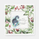Add a festive and personal touch to your holiday celebration with these cat pet portrait Christmas napkins, featuring an elegant watercolor black and white fluffy kitty framed by hand-painted Christmas botanicals.