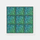 Un ensemble de serviettes en papier avec un noeud bleu-vert celtique motif carré répété contre un arrière - plan noir.
