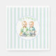 Mignonnes serviettes en papier baby shower bleu et vert avec deux jumeaux de garçon aquarelle.