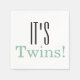 Fêtez votre arrivée avec ces serviettes en papier festives baby showers. Ce design présente le texte "It's Twins!" en couleurs noir et vert jade.