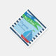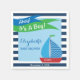 Cette serviette en papier baby shower a un thème nautique. Un arrière - plan aux rayures horizontales bleu foncé et blanc est accentué avec un drapeau vert et bleu agitant sur le dessus et un voilier mignon près du fond. Le texte sur les drapeaux dit : Ahoy ! C'est un garçon ! Le texte personnalisable au milieu permet d'ajouter le nom de la mère et la date de la douche.