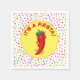 Serviette en papier personnalisée. Piments de piment mignons en style dessin animé disant "C'est une fiesta !" Motif Confetti dans l'arrière - plan. Idée cadeau pour les personnes qui aiment la cuisine et la culture mexicaines.
