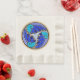 Le design japonais du nénuphar a donné un nouveau look radicalement nouveau à la peinture numérique originale de Leslie Sigal Javorek qui orne cette serviette. Appareils fabriqués avec des carreaux en céramique en lilas, périwinkle, bleu, aqua & ivoire; au centre est Hébreu "Chai" (Vie). Assez pour les fêtes ou fêtes.