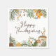 Rustique, serviettes Thanksgiving avec un couple arrangements botaniques avec des fleurs sauvages, des champignons, des feuilles de pins, des feuilles d'automne et une abeille bourdonnante. Typographie de Bon thanksgiving personnalisée.