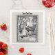 Cette serviette en papier a le Petit Chaperon Rouge dans les bois avec son panier de bonbons parlant au loup dans un dessin vintage noir et blanc dans un cadre noir orné.