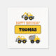 Les camions Jaune Construction décorent cette serviette d'anniversaire personnalisée, ce qui en fait une pièce parfaite pour votre fête de camion de construction.