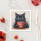 Serviette En Papier Chat Noir Avec Mug De Café Rouge