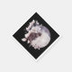 Serviettes en papier avec une aquarelle représentant un chat noir et un bouquet floral violet clair et rose. Devant une grande lune. Design et magique.