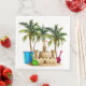 Une adorable serviette en papier pour une fête faite dans les palmiers et un joli château de sable.