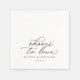 Cheers to Love Wedding Napkins – These elegant black and white wedding napkins feature the phrase “cheers to love” in beautiful calligraphy script. Perfect for your wedding reception, cocktail hour, or engagement celebration, the simple design adds a modern yet timeless touch to your décor. A stylish way to toast the happy couple and celebrate love in classic elegance.