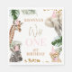 Cheetah Print Girls Safari Animals Wild One 1st Birthday Paper Napkin Sweet girl's safari thème de premier anniversaire serviette en papier avec quelques animaux de fête safari, casquette de fête, feuillage tropical et un titre d'image calligraphie moderne. La serviette de première année sur le thème Safari est idéale pour une fête de premier anniversaire sur le thème safari filles.
