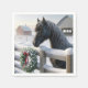 Serviette En Papier Cheval noir avec une couronne de Noël enneigée