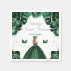 Cette serviette élégante et glamour en sweet sixteen présente une belle princesse aux cheveux blonds dans une robe de boule vert foncé. Le texte combine écriture manuscrite et polices sans serif modernes pour un look élégant et sophistiqué. Les arrangements floraux, papillons et confettis argentés créent un mélange parfait de rustique et de chic. Graphiques par www.etsy.com/uk/shop/SunflowerDayLove