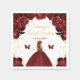 Cette serviette élégante et glamour en sweet sixteen présente une belle princesse aux cheveux bruns dans une robe rouge foncé. Le texte combine écriture manuscrite et polices sans serif modernes pour un look élégant et sophistiqué. Les arrangements floraux, papillons et confettis d'or créent un mélange parfait de rustique et de chic. Graphiques par www.etsy.com/uk/shop/SunflowerDayLove