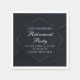 Cette serviette en papier design noir et or pour la retraite propose un hexagone géométrique moderne autour de votre message personnalisé en typographie blanche. Décor élégant pour un retraité à célébrer par des amis et la famille à la fin de leur carrière.