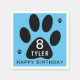 Serviettes Anniversaires de enfants de fête de chien Paw Blue. Le design comporte un texte d'anniversaire heureux, un nom dans un empreinte de patte de chien noir sur un arrière - plan bleu. Personnalisez les serviettes avec le nom et l'âge du jeune.