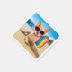 Cette jolie photo montre un chien chihuahua sur la plage portant un drapeau Gay pride de couleur arc-en-ciel.