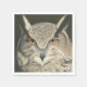 Un crayon de couleur et un dessin au stylo d'une Grande Chouette à la corne avec des yeux orange percés.