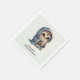 Des serviettes en papier avec un kawaii illustration d'un hibou aux yeux grands dans une robe d'hiver et un foulard tenant un café chaud.