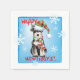 Célébrez la saison des Fêtes avec un mignon chiot de Schnauzer en miniature portant un casquette et une écharpe au milieu d'une flocons de neige. Joyeux Howlidays !