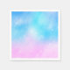 Serviettes en papier avec un arrière - plan fantaisiste. Couleur pastel rose et bleu dégradé. De petites étoiles blanches parsèment le paysage. Design fantasque et magique.
