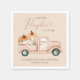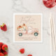 Des serviettes jolies et neutres pour votre baby shower avec "un petit citrouille sucré est en route" en typographie grise et un script en terre cuite avec un swash coeur et des aquarelles d'un camion vintage transportant des citrouilles orange et crème et des bouquets floraux.