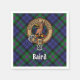 Clan Baird badge crête entouré d'une sangle et boucle sur l'arrière - plan tartan. Texte personnalisé.