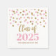 Serviettes de graduation personnalisables pour classe de 2025 avec motif glamour or et confetti rose.